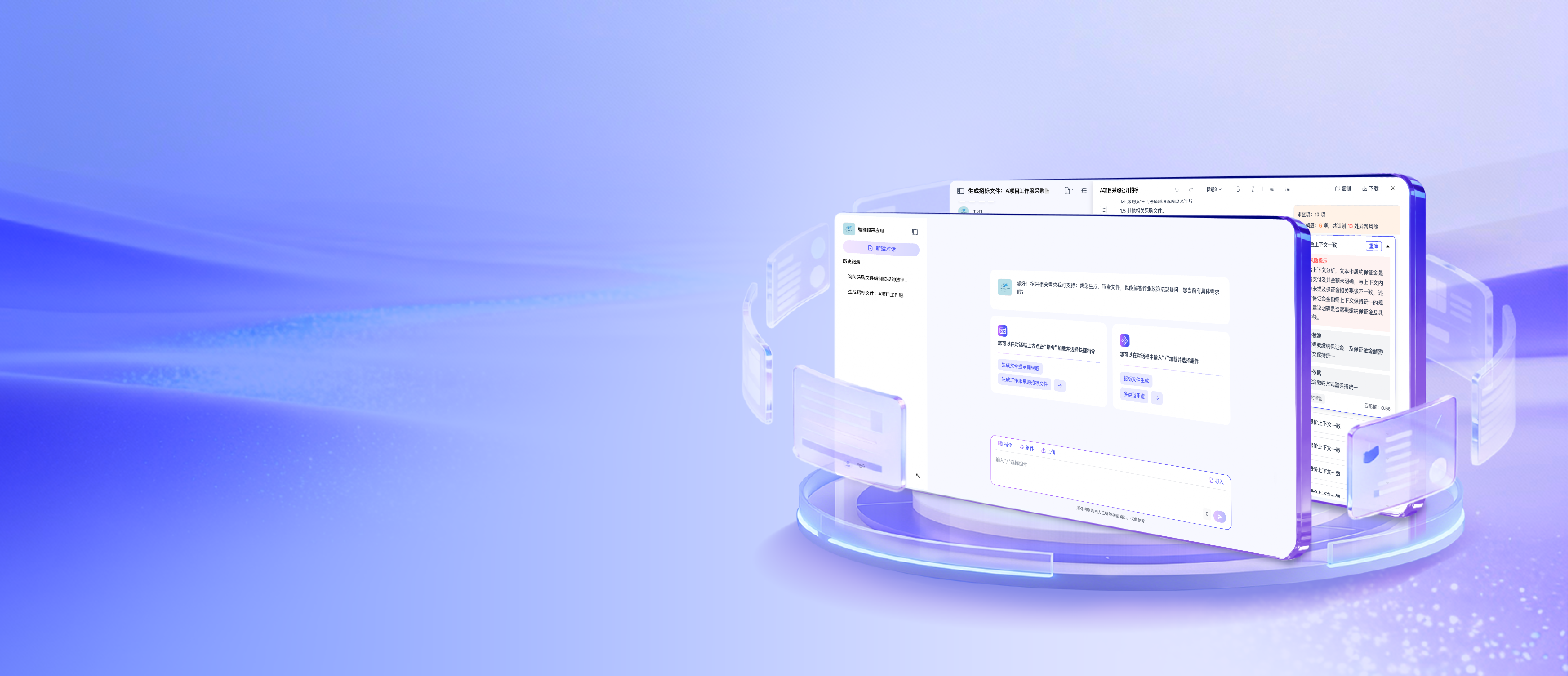 5分钟生成招标文件。基于法规和行业规范快速完成智能审查。